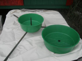 DRILLED TREE SANDS These stands have a 3-prong rebar base that screws into the bottom of the tree after it has been drilled (we can drill the tree for you). The bowl is a flexible plastic that will hold water for your tree. It comes in two sizes: Large--22" legs, 10 qt. bowl $25.00 Medium--18" legs, 10 qt. bowl $21.00