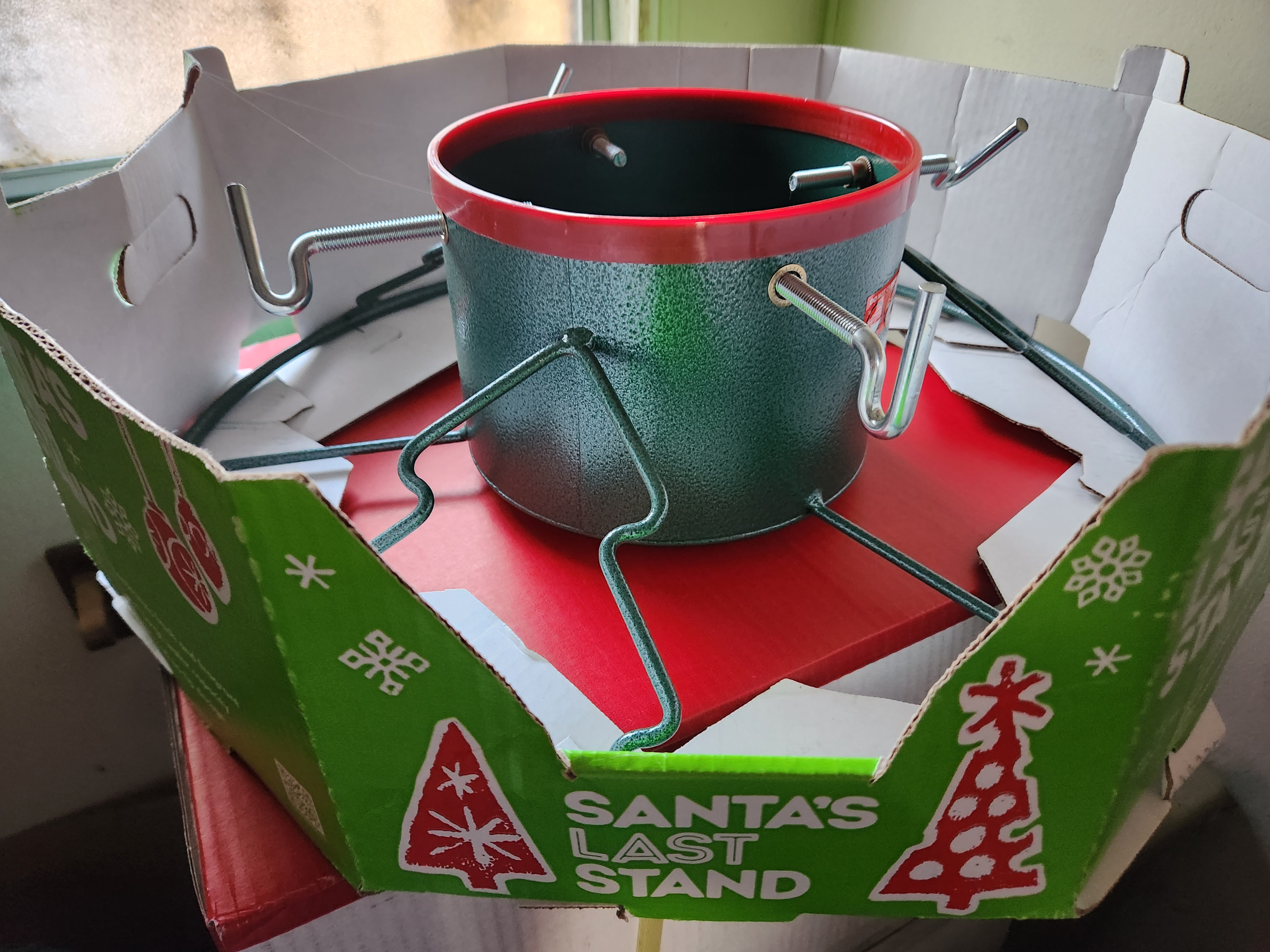 SANTA'S LAST STAND This stand is made of welded metal with sturdy "Christmas Tree" shape legs for stability and many years of service. For trees 4 to 12 ft. $50.00