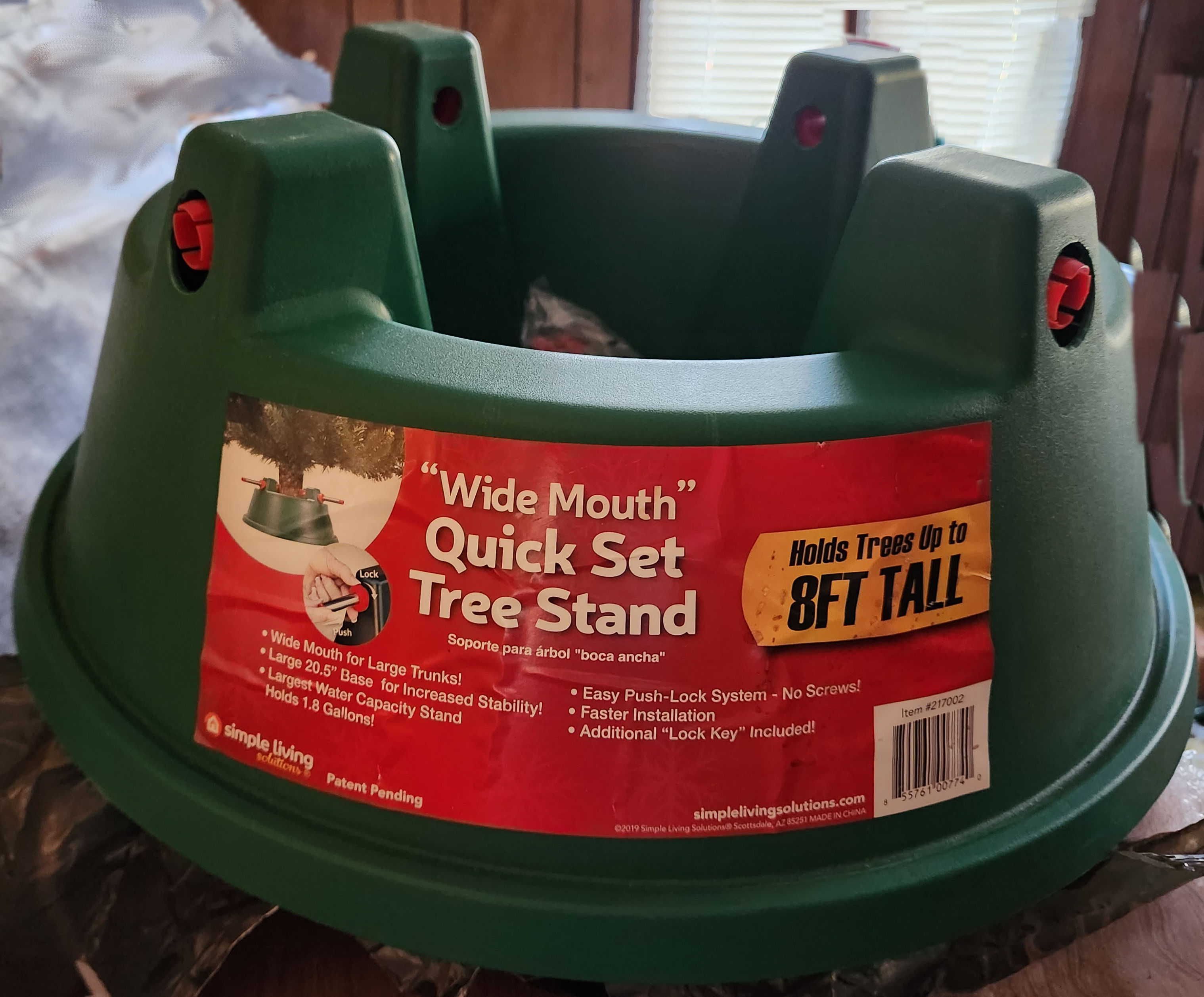 "WIDE MOUTH" QUICK SET This stand has bolts with end caps to secure your tree and is easy to adjust. It has a deep water reservoir and a lip to catch any overflow. Medium--For trees up to 8 ft. $25.00 Large--For trees up to 10 ft. $30.00